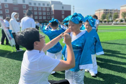 启智门,点朱砂。古时候孩童在入学前要行“开笔礼”,今天二实验的孩子们也体验了一次“朱砂开智”。王海婧校长亲手为每一个孩子在额头正中央点上红痣,祝福孩子们带着智慧从容启航,从此眼明心亮、乘风破浪。