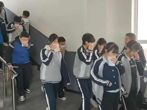 上午9时05分,随着警报声骤然响起,消防疏散演练正式启动。各班级教师迅速反应,有序组织学生按照既定路线撤离。同学们弯腰低姿、捂住口鼻,沿着安全通道快速前进,整个过程中秩序井然、反应迅速,展现出良好的应急素养。全校千余名师生仅用时2分15秒便全部安全集结至操场指定区域,演练达到了预期效果。
