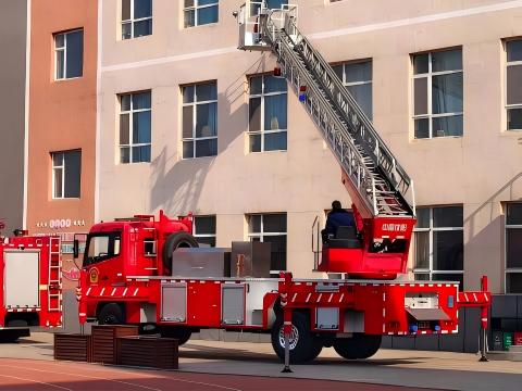 疏散结束后,龙潭区消防救援大队的消防员为全校师生带来了一场生动实用的消防知识培训。现场展示了云梯消防车高空救援的全过程,随着云梯缓缓升起,直指楼顶,模拟救援场景紧张而震撼,赢得了师生们的阵阵掌声。通过直观的实操演示,师生们对现代消防装备的功能与使用有了更深入的了解,也进一步增强了应对火灾的信心和能力。