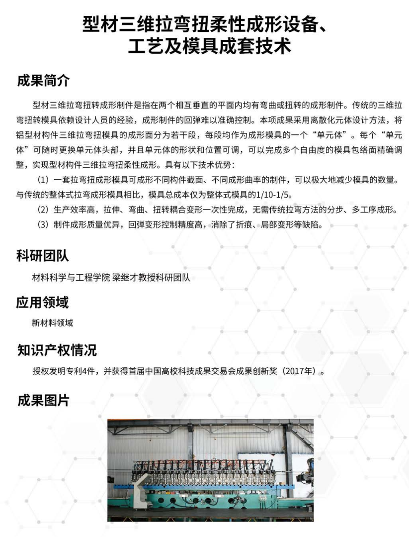 型材三维拉弯扭柔性成形设备、工艺及模具成套技术