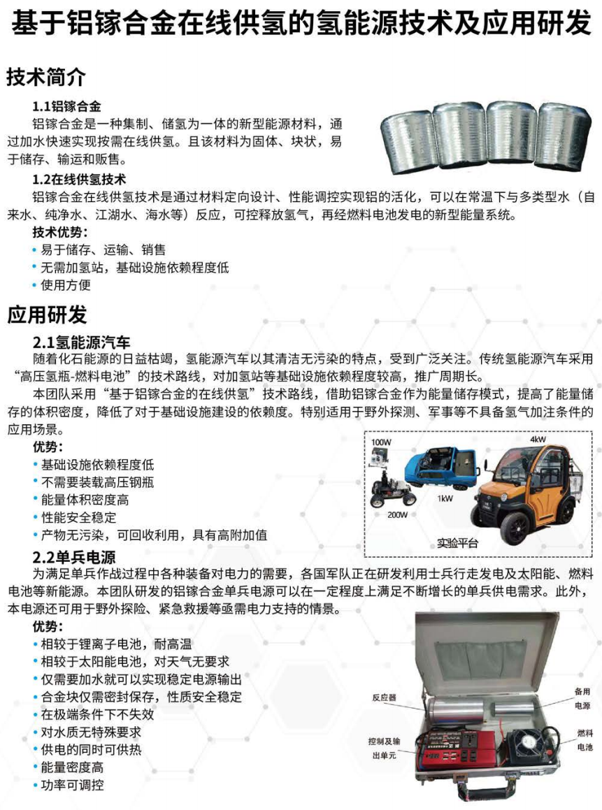 基于铝镓合金在线供氢的氢能源技术及应用研发
