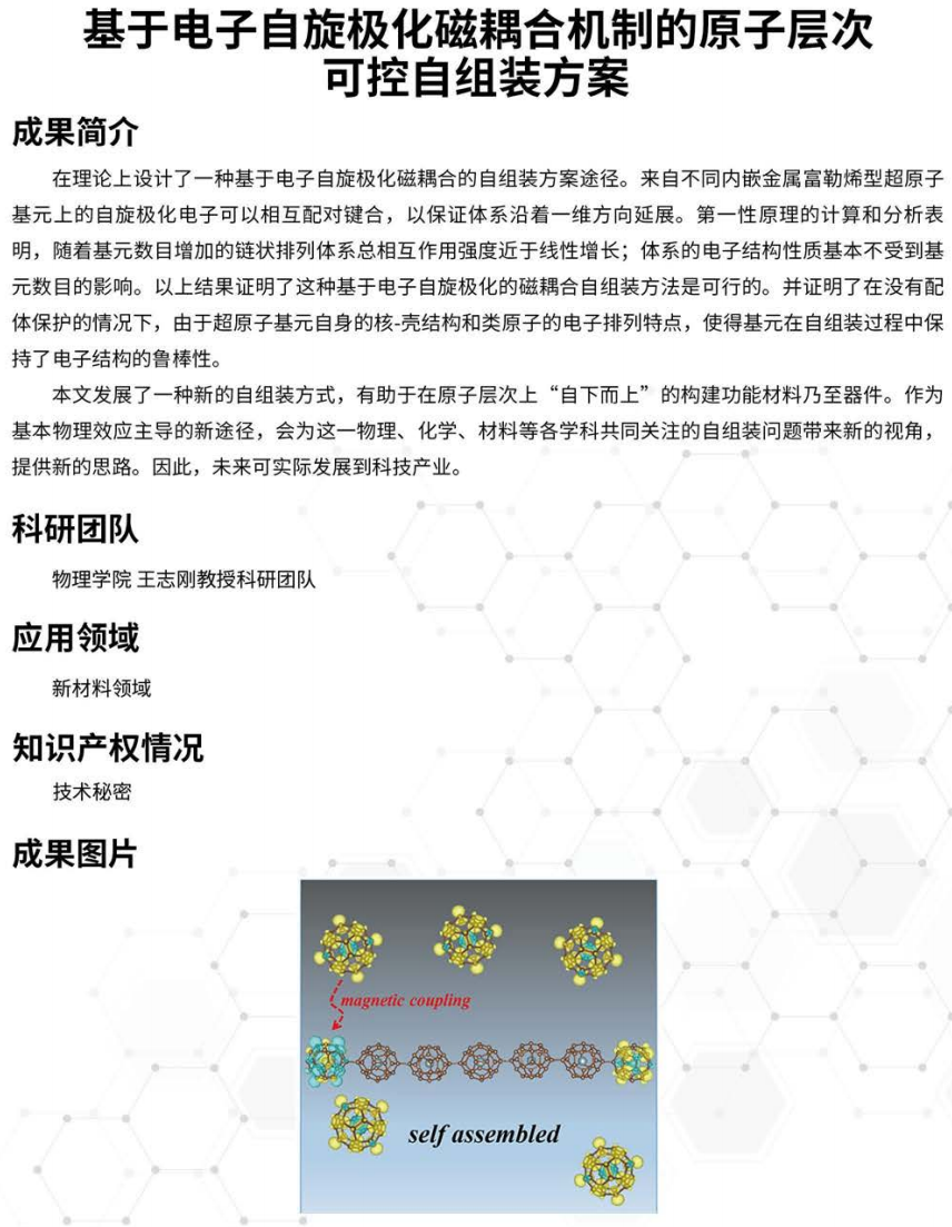 基于电子自旋极化磁耦合机制的原子层次可控自组装方案