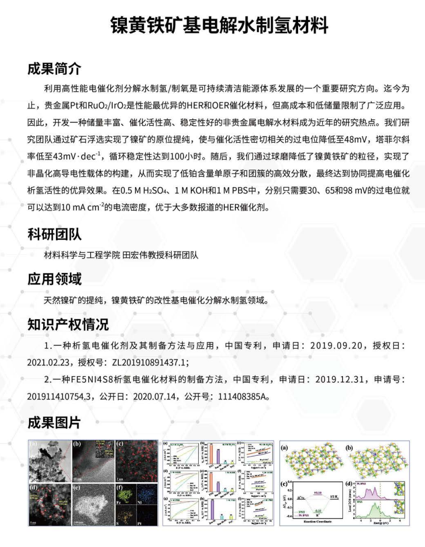 镍黄铁矿基电解水制氢材料