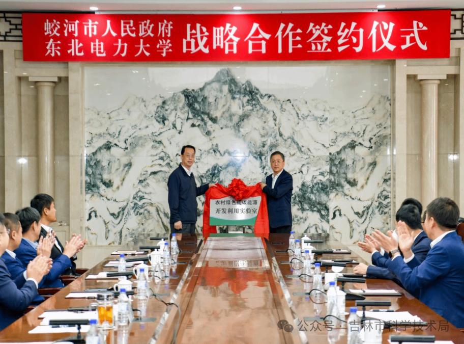 仪式上,与会人员就战略合作协议相关内容进行会谈。张静辉指出,此次战略合作是深入贯彻党的二十届三中全会精神,加强产学研深度融合,构建高效协同的产学研创新体系,推进科技成果转化,探索校地融合的生动实践。本次合作将围绕人才培养、科技创新、文化交流等多个领域展开,通过资源共享、优势互补,实现互利共赢。王威在致辞中说,签订战略合作框架协议,是深入推动校地协同融合发展的务实之举,必将对我市经济社会发展、特别是新能源产业发展产生深远影响。蛟河风能、太阳能等可再生能源资源富集,区位优势突出,传统石材产业和农产品加工产业等绿色化转型对技术需求较大,希望双方能够谱写出科技创新引领产业创新的新篇章。