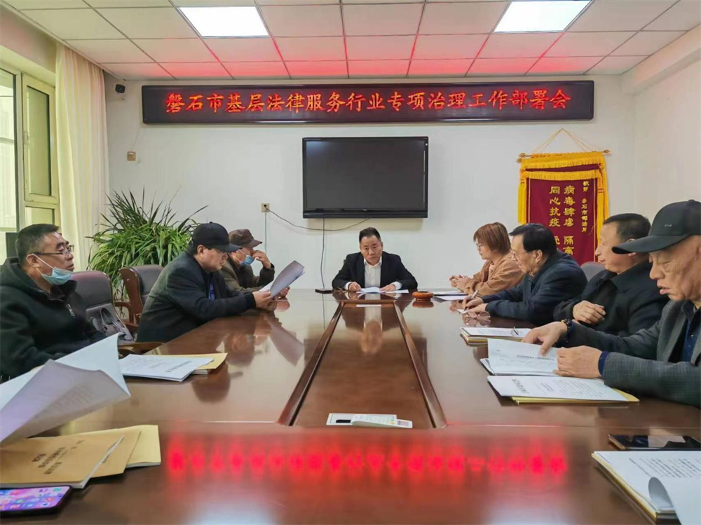 为全面加强全市法律服务工作者队伍建设。近日,磐石市司法局召开基层法律服务行业专项治理工作部署会,要求法律服务工作者,以争做新时代中国特色社会主义法律工作者为总目标,压紧压实行业管理责任,以学习教育为基础,以自查核查为重点,以集中整治为关键,以总结提升为抓手,推动各项专项治理措施落实到位,加强宣传引导,大力宣传基层法律服务行业先进事迹,展现新时代基层法律服务工作者风采。