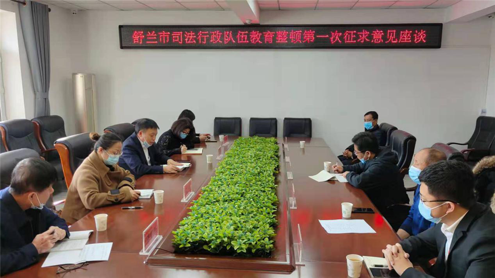 近日,舒兰市司法局召开全市司法行政队伍教育整顿第一次征求意见座谈会,邀请本系统人大代表、政协委员、基层法律服务工作者、律师、部分街道(社区)工作人员及辖区群众代表参加会议。会上通报了当前司法行政系统教育整顿工作进展情况,参会代表结合工作实际,围绕教育整顿开展情况,对司法行政队伍存在问题和改进方向建言献策。