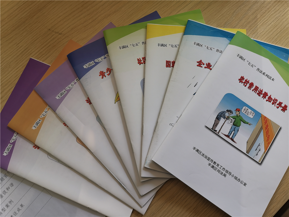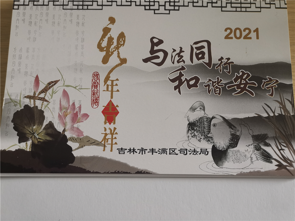 一是通过宣传产品扩大宣传范围。设计制作印有法律援助、人民调解、法律服务、依法治理等公共法律服务业务宣传资料的精美新年台历2000余份,对《宪法》《民法典》及习近平总书记依法治国重要讲话内容进行宣传,印制10种公共法律服务(法律援助、人民调解、法律服务等)服务指南和法律服务事项指引及8种丰满区“七五”普法系列读本共3000余份,分发给辖区司法所及公共法律服务中心,供办事群众取用。