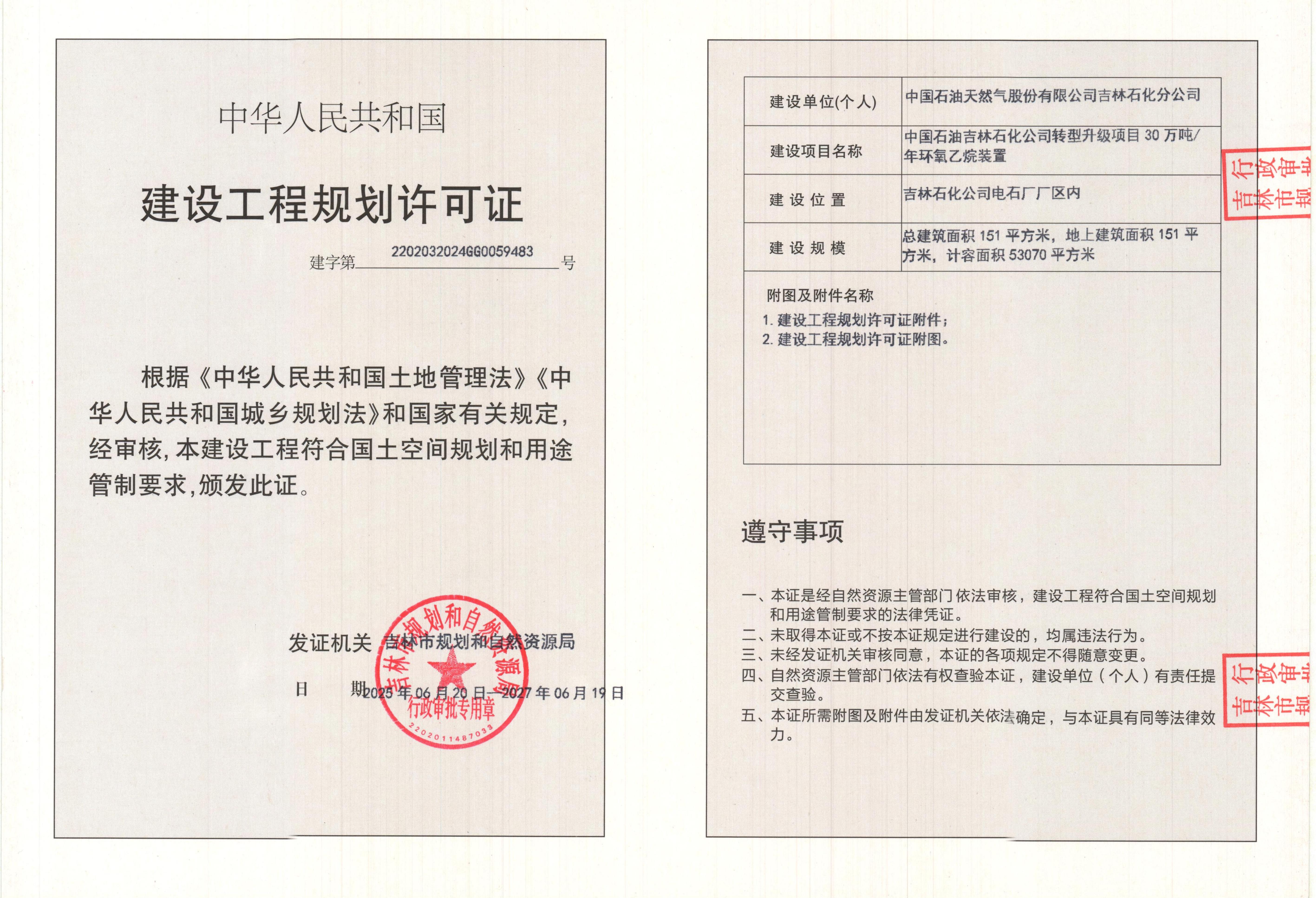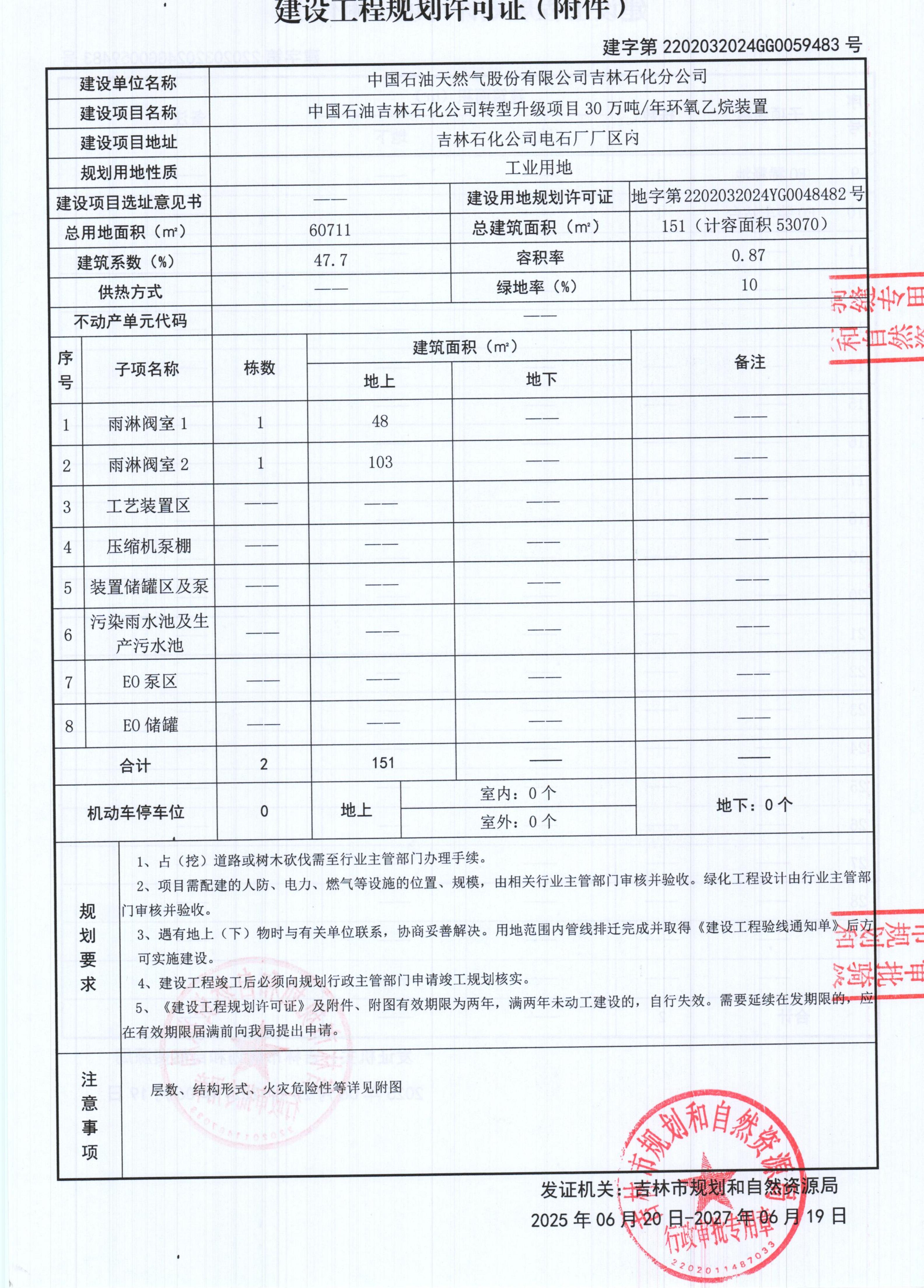 中国石油吉林石化公司转型升级项目30万吨/年环氧乙烷装置批后公告