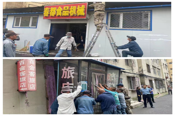加强部门协同联动,开展合力攻坚。由站前街道综合行政执法队伍牵头,充分发挥“吹哨报到”机制作用,联合执法大队、环卫、专业拆迁队伍等力量,开展“老旧小区改造拆违攻坚”专项行动,逐幢、逐户拆除违章搭建、私拉庭院与违规钢构,并帮助有困难的居民清点、搬运室内外物品、地面附属物和蔬菜、花卉等,为老旧小区“蜕变”奠定坚实基础。