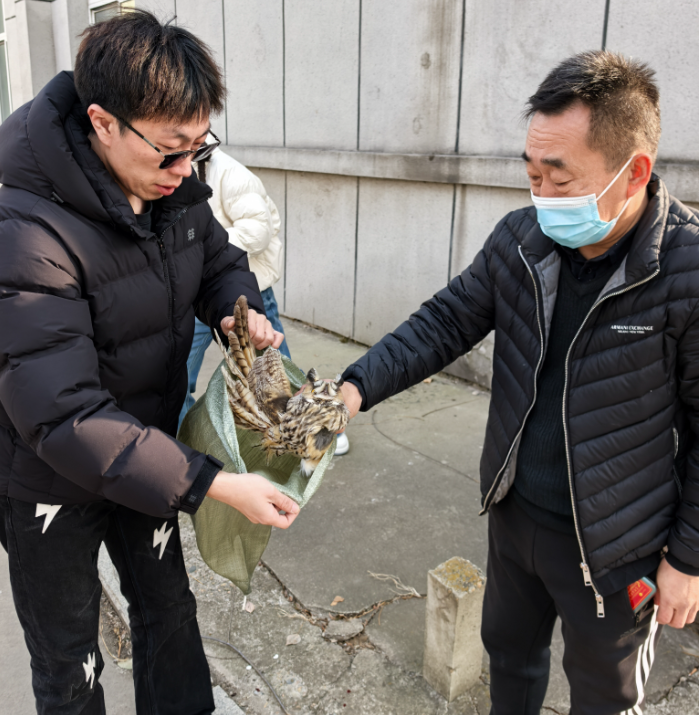 11 月 26 日上午,双飞社区接到居民反映,在原化工学院双吉校区内发现一只无法正常飞行的野生鸟类,疑似翅膀受伤。接报后,社区工作人员高度重视,第一时间赶赴现场。只见这只鸟类身形小巧,耳朵状羽毛十分显眼,正是长耳鸮。工作人员小心翼翼地将其带回社区安置,全程轻拿轻放,避免其受到二次伤害。