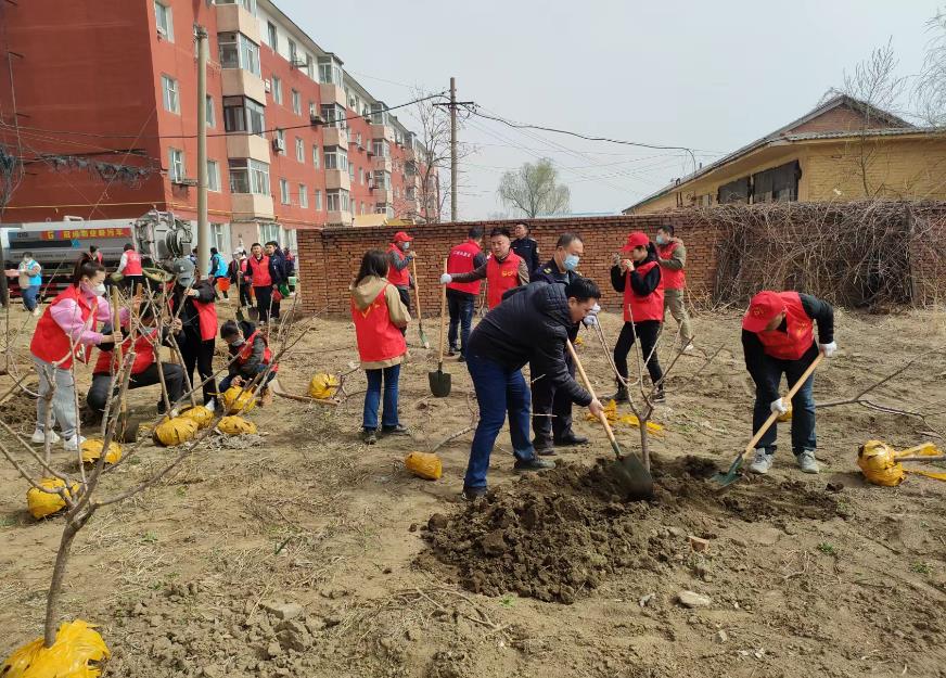 4月13日,吉林经开区双吉街道组织社区和党建联盟单位,在吉航小区义务植树。来自双飞社区、双翔社区和吉航公司、吉林化工学院双吉校区、双吉派出所、冠成物业的志愿者参加了植树,共种植海棠、李子150株,美化了小区环境。