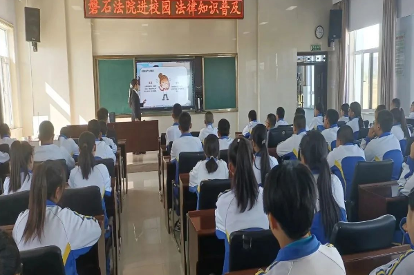 为提高未成年人法治意识,助推平安校园建设,市人民法院组织刑事审判庭干警深入磐石市实验中学,从中小学生认知水平和思维辨别能力、如何预防未成年人违法犯罪、怎样预防校园欺凌等多维度进行普法宣讲,并通过剖析近年来发生的具体案例,引导学生树立正确法治观念,养成遵纪守法的良好习惯。