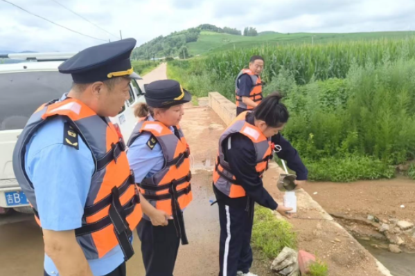 执法人员重点核查粪污堆放点是否采取防雨、防渗等措施,评估对土壤和地下水的污染风险,并同步检查周边水体是否存在黑臭问题,追溯污染来源,为后续治理提供依据。同时借助科技手段,利用无人机进行高空巡查,快速锁定隐蔽污染点。监测人员现场采样快速检测,提升排查精度和效率。截至目前,已完成247户规模养殖场(户)和5个养殖密集村屯的排查工作。