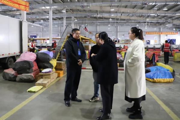 调研组实地察看快递分拣中心场地布局、设施配备及快件分拣、中转、派送等全流程运行情况,详细听取企业负责人关于日常运营、旺季保障、安全生产、服务民生等方面工作汇报,深入了解我市快递行业近年来发展成效。