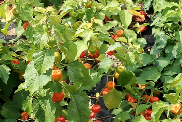 金秋时节,石嘴镇永胜村、土门子村等村集体经济田里的红菇娘陆续成熟,像一个个喜庆的大红灯笼,挂满了植株,田地里满目皆是丰收的喜人景象。