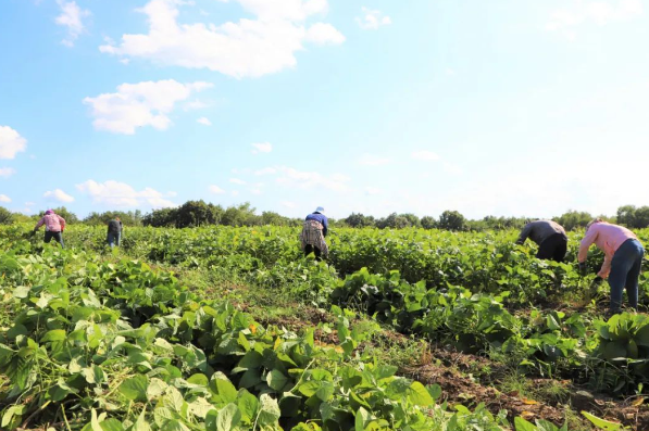 据了解,今年春天,牛心镇多村联合,经过多方考察,了解到毛豆种植技术简单,好管理,而且可以与企业签订购销合同,销路不愁。另外,毛豆收获后,剩下的秸秆还可以作为青储饲料用作饲养家禽牲畜,毛豆根系根瘤菌还有固氮功效,有效增加土壤肥力,可谓全身是宝。