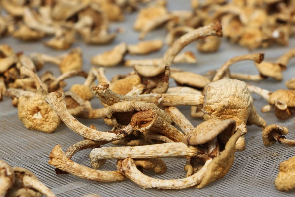 “我们不少在家的农户都来这里干活,每天能挣150元,增加了不少收入。”取柴河镇四道村村民王军介绍道。在基地的晾晒场,工人们正熟练地对滑子蘑进行分拣和修剪。大家手法娴熟,仔细剔除菌柄底部的杂质,将一朵朵滑子蘑摊放在网筛上,借助秋日阳光自然晾晒。随着水分逐渐蒸发,菇香愈发浓郁,金黄的颜色更显诱人。