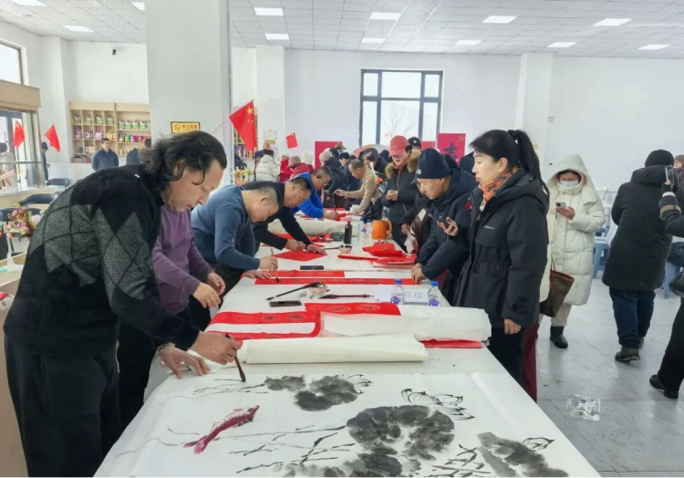 活动现场,人气最旺的当属书法互动区。书法家铺纸研墨、挥毫落笔,创作出一副副饱含祝福的春联和“福”字,村民和游客围在桌前挑选,笑声不断。游客服务大厅门前,东北秧歌热闹登场,鼓点铿锵、彩扇翻飞,演员身着鲜艳服饰,在雪地里踏着节拍起舞,引得游客驻足拍照,记录精彩瞬间。