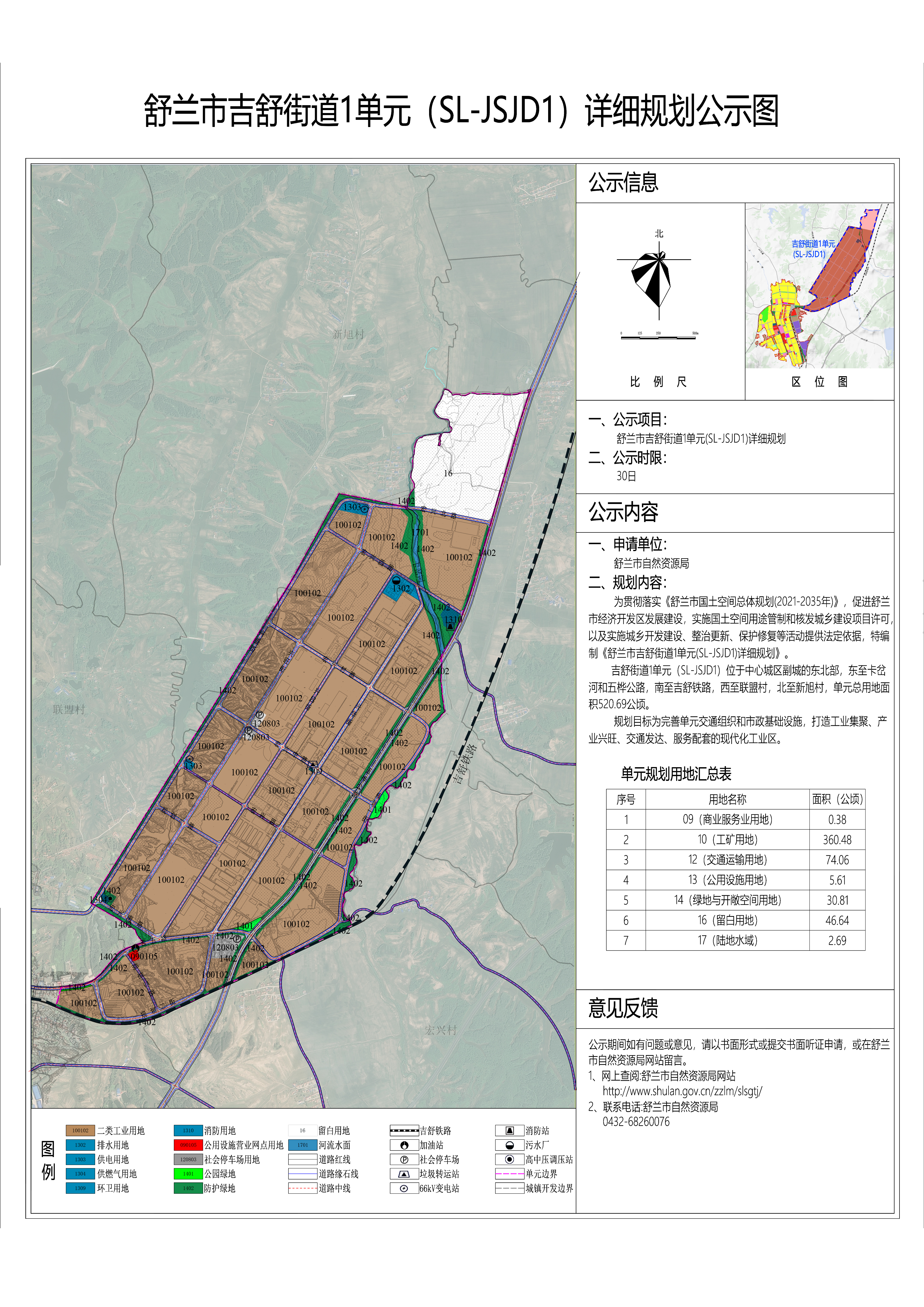 为充分征求公众意见,现将《舒兰市吉舒街道1单元(SL-JSJD1)详细规划》进行公示。公示时间30天,自2026年2月24日起至2026年3月25日止。
