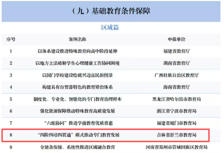 近日,舒兰市《“四阶四培四贯通”模式推动专门教育发展》入选教育部2025年中国基础教育创新案例。