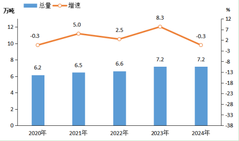 全年粮食总产量7.2万吨,比上年下降0.3%。其中,水稻产量0.8万吨,下降1.3%;玉米产量5.9万吨,增长3.2%;大豆产量0.08万吨,增长2.4%。