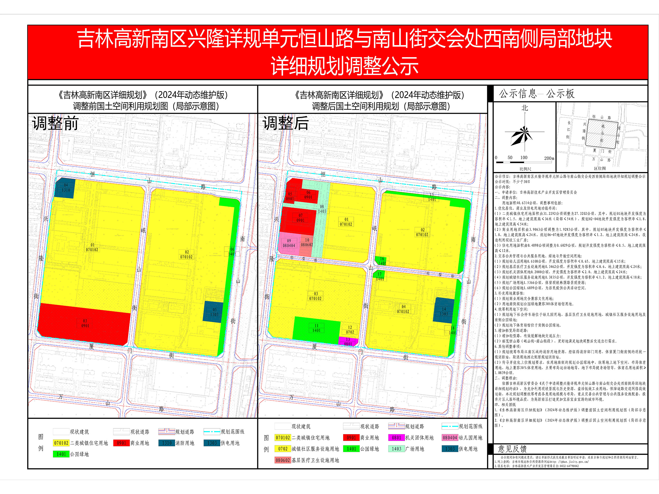 关于对吉林高新区兴隆详规单元恒山路与南山街交会处西南侧局部地块详细规划调整公示的公告