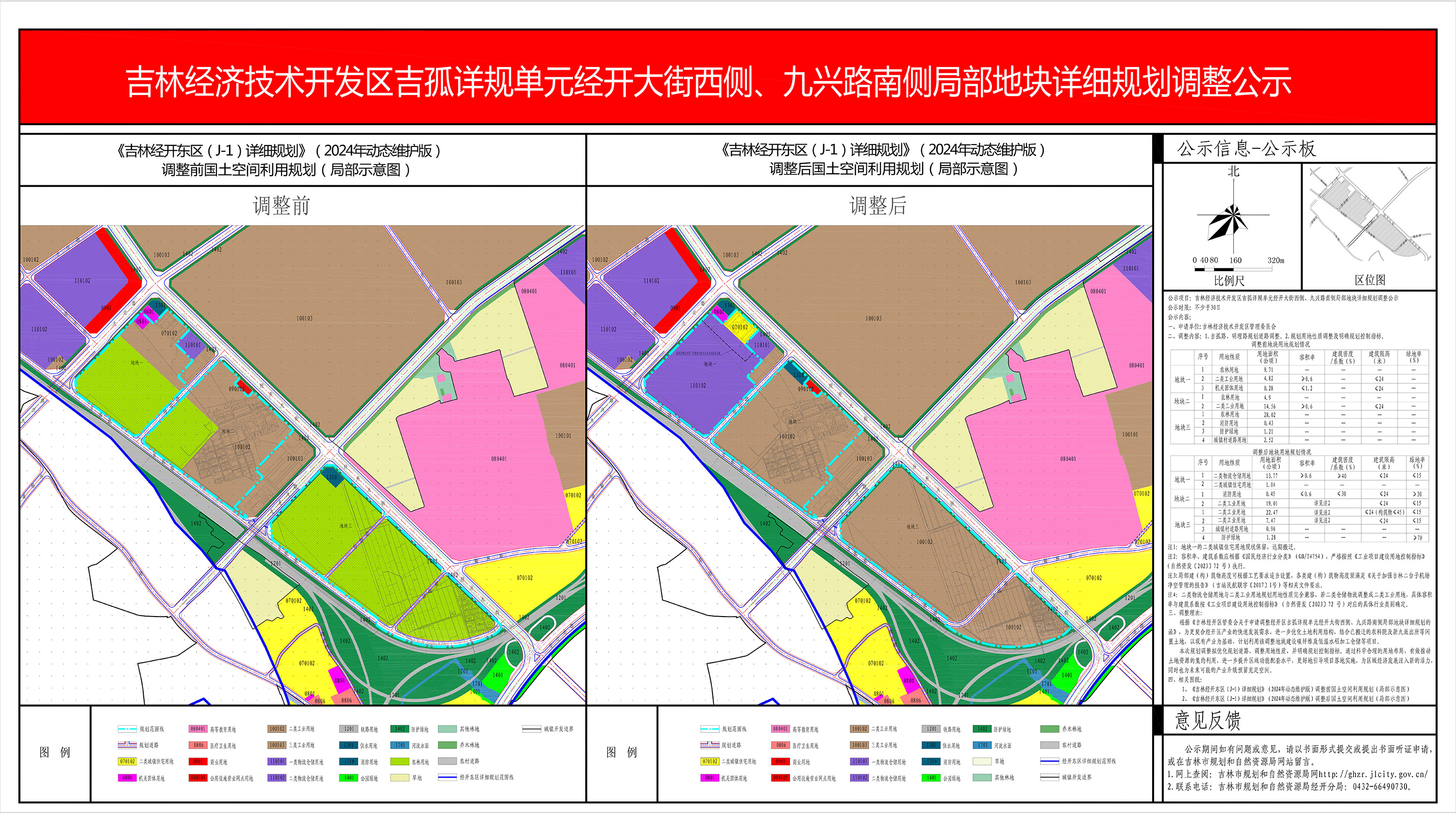 由经开区管委会提出申请,我局拟对吉林经开区吉孤详规单元经开大街西侧、九兴路南侧局部地块详细规划进行调整。根据《中华人民共和国城乡规划法》的相关规定,定于2026年1月22日至2026年2月20日,对上述地块的详细规划调整方案进行公示,公示期为30天。