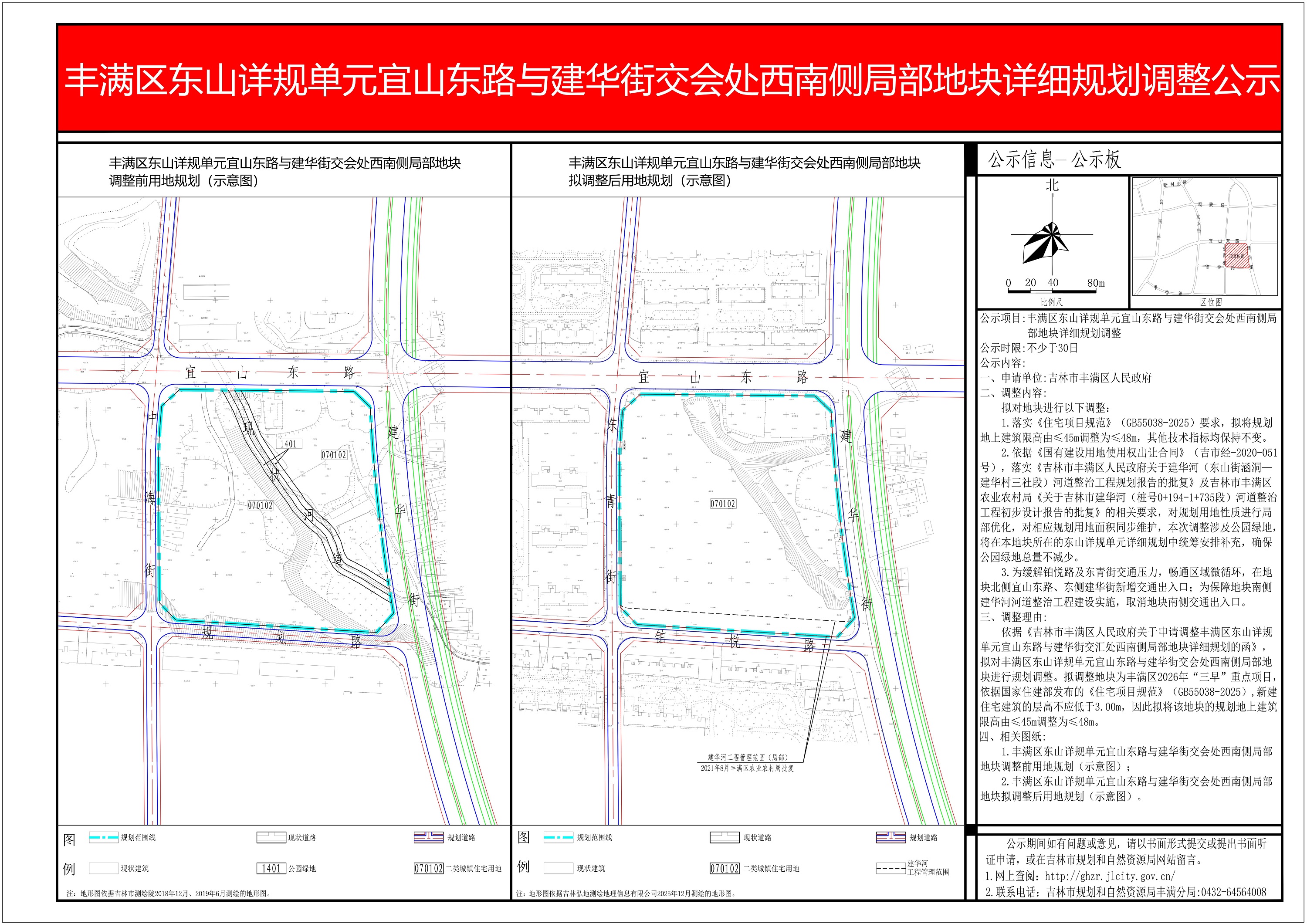 关于对丰满区东山详规单元宜山东路与建华街交会处西南侧局部地块详细规划调整公示的公告