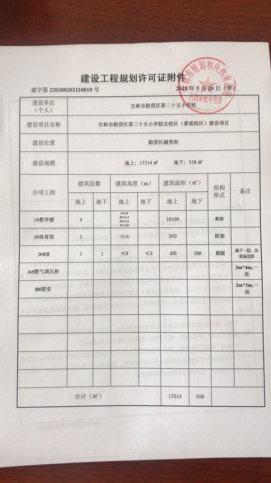 吉林市船营区二十五小学校北校区(雾凇校区)建设项目