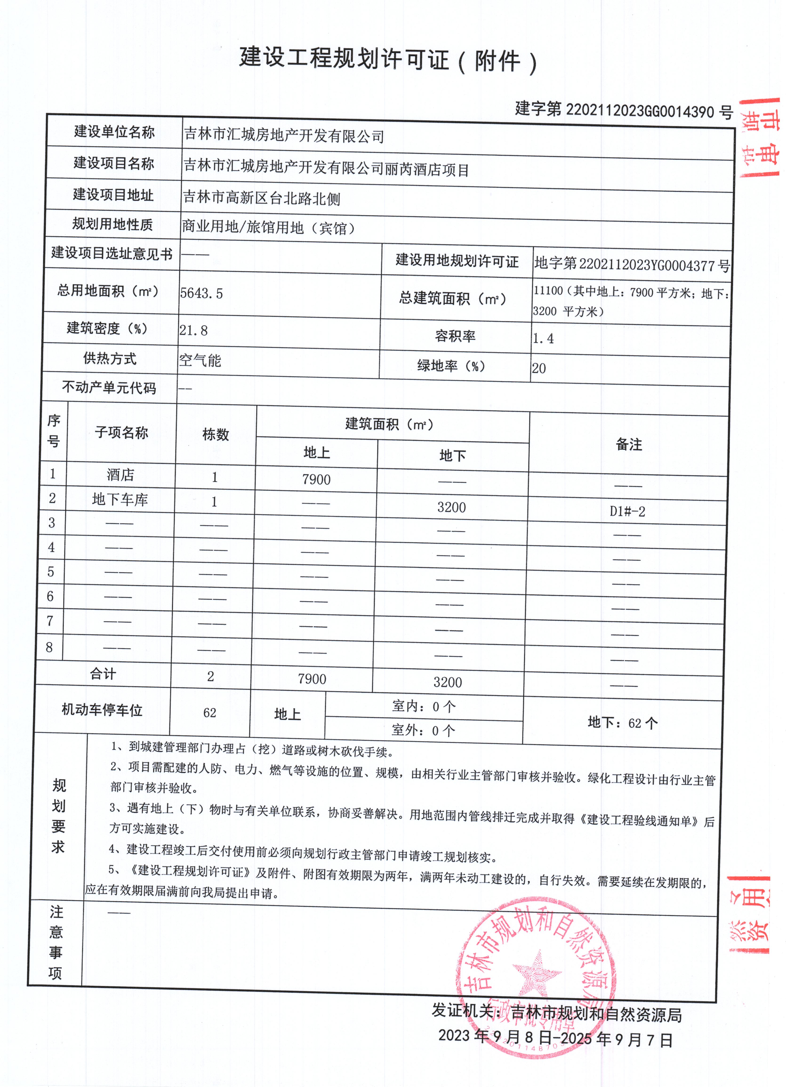 吉林市汇城房地产开发有限公司丽芮酒店项目