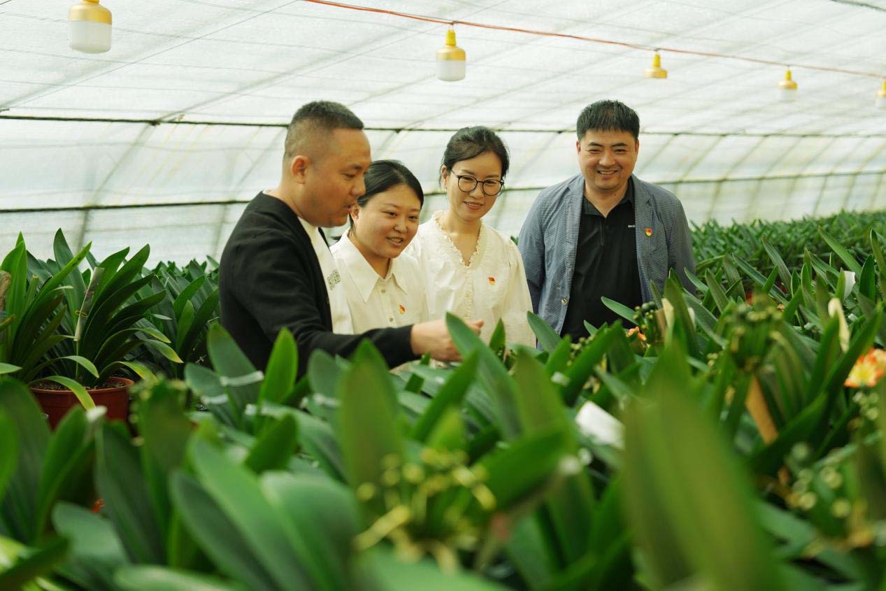 公主岭市纪委监委工作人员在大岭镇君子兰种植基地,向农户了解惠农政策落实情况。