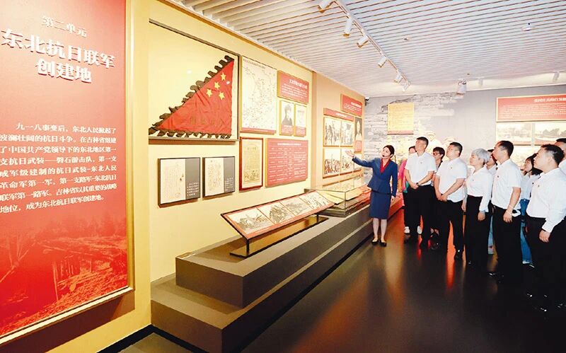 2025年8月19日上午,以“铭记历史,开创未来”为主题的吉林省近现代史展在长春市开展,本次展览分为9大展区、28个单元,展出1000余件(套)实物展品,使用图片1200余张、数据图表70余个,全景式讲述自清代以来至新中国成立吉林地区300余年的历史风貌。图为9月9日,观众正在参观展览“东北抗日联军创建地”内容。 吉林省委宣传部供图