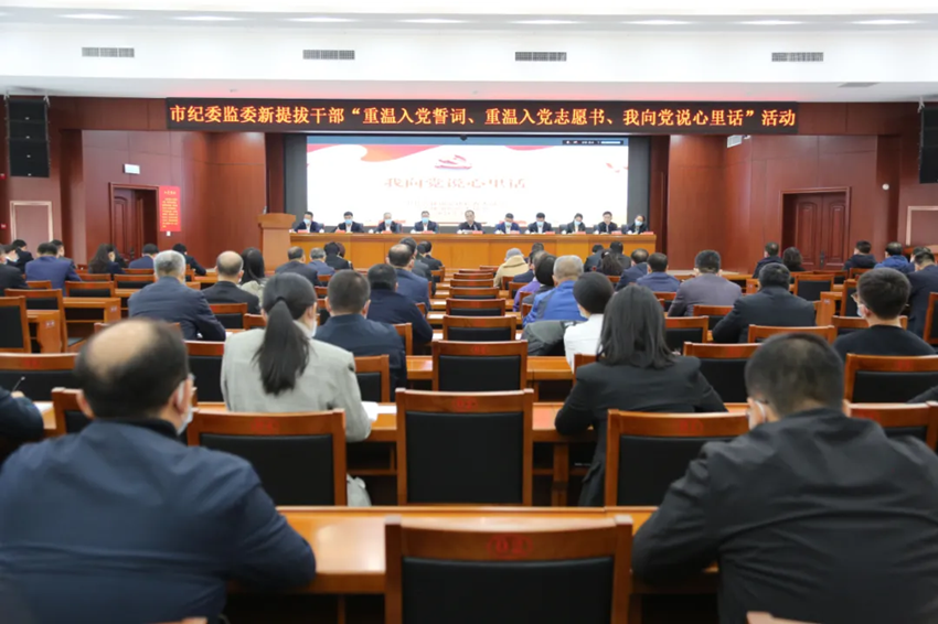 为进一步加强市纪委监委机关党员干部理想信念教育,深化党史学习教育成果,市纪委监委组织开展新提拔干部“重温入党誓词、重温入党志愿书,我向党说心里话”活动,进一步深化党性党纪教育,锤炼党性修养,为推动全市纪检监察工作高质量发展鼓舞士气、凝聚力量、奋发作为。