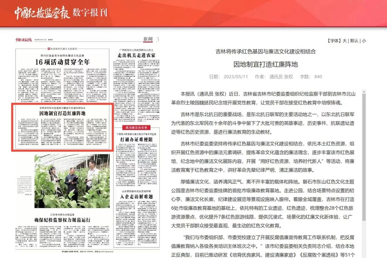 吉林将传承红色基因与廉洁文化建设相结合