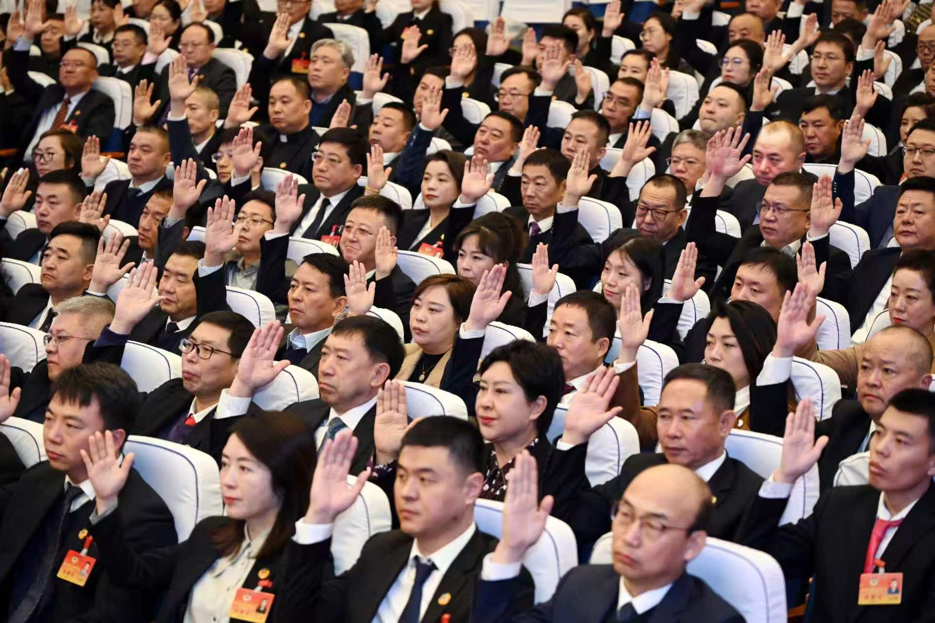 会议宣读表扬2024年度优秀市政协委员、优秀提案、“金点子”、优秀社情民意信息和优秀市政协文史研究员;会议审议通过选举办法,总监票人、总计票人、监票人、计票人名单。
