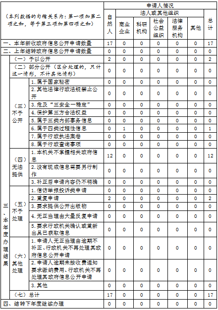 三、收到和处理政府信息公开申请情况